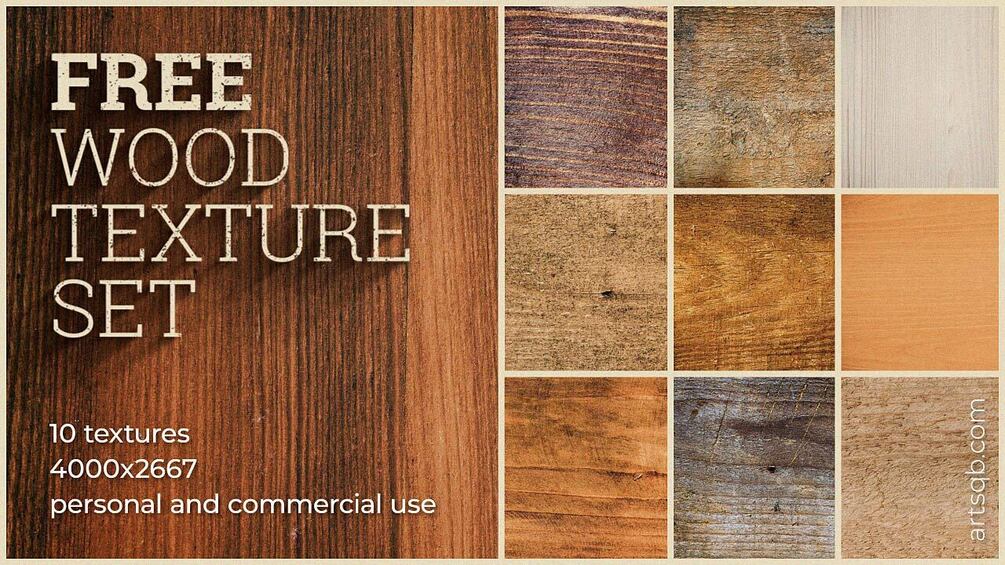 Set of 10 free wood textures. JPG 4000x2667 px.